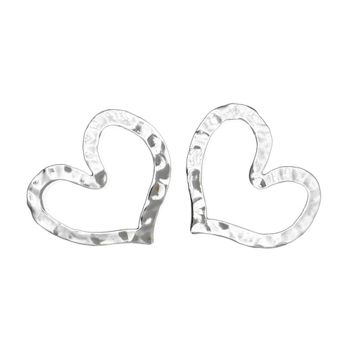Oscar de la Renta Hammered Rhodium-Plate Heart Silhouette Post Earring 1.5” x 2”