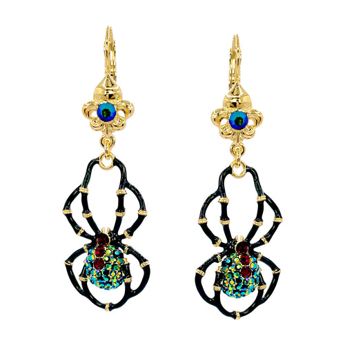 Spooky Spider Halloween Leverback Earrings Ritzy Couture DeLuxe 18k Gold Plating