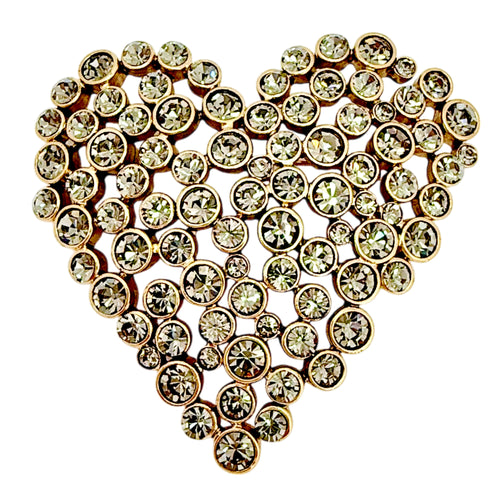 Oscar de la Renta Large Pave Austrian Crystal Heart Cluster Pin, 22K Gold Plated