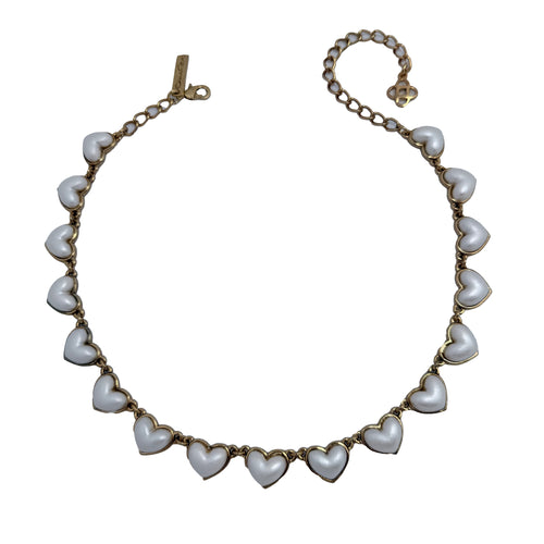 Oscar de la Renta Faux Pearl Romantic Heart Choker Necklace in 22k Antique Gold