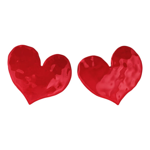 Oscar de la Renta Dramatic Large Love Red Enamel Heart Clip Earrings, 1.5" x 2"