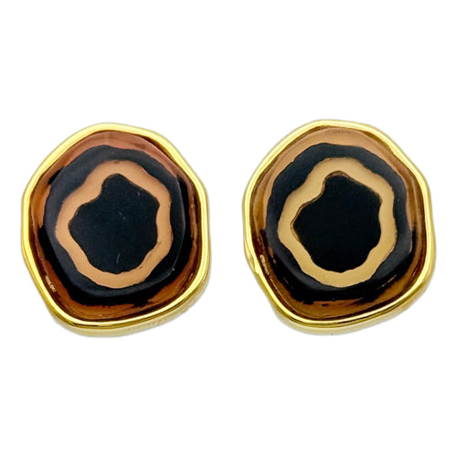 Kenneth Jay Lane 22k Gold Plated Faceted Enamel Nugget Clip Earrings Bold Design
