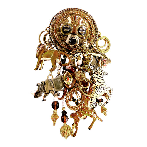 Lunch at The Ritz Safari Adventure Jungle Animal Brooch Pendant 22k Goldtone