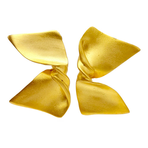 Kenneth Jay Lane 22K Gold Plated Sculptural Ribbon Bow Twist Clip-On Earrings