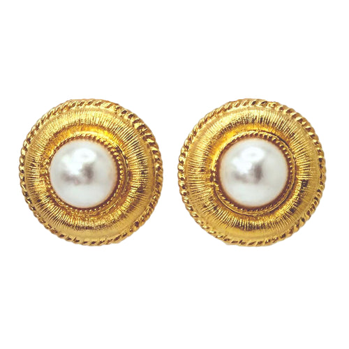 Kenneth Jay Lane 22K Gold-Plated Button Earrings with Pearl Cabochon Clip-On