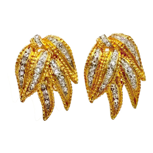 Kenneth Jay Lane Five-Leaf Crystal Pavé Clip-On Earrings in 22K Gold Elegance