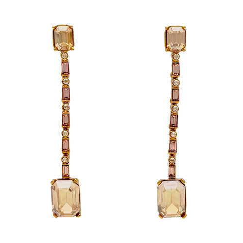 Oscar De La Renta Rose Gold Smoke Topaz Crystal Drop Earrings Contemporary