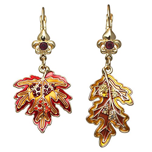 Ritzy Couture Oak & Maple Leaf Fall Foliage Leverback Earrings Goldtone Multicolor