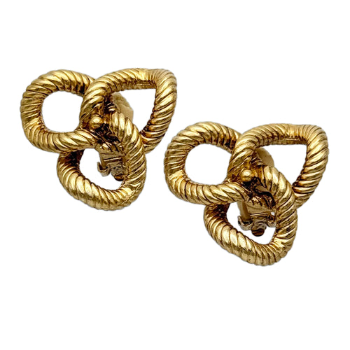Kenneth Jay Lane 22k Gold Plated Twisted Rope Knot Statement Clip-On Earrings