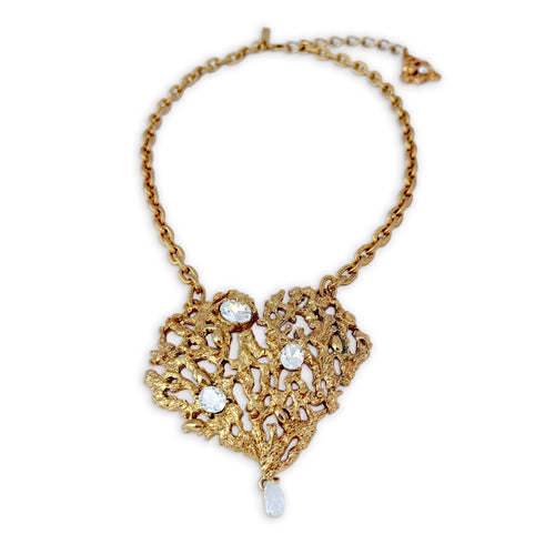Oscar de la Renta 22K Gold Coral Reef Inspired Heart Brooch, 3.5” x 3.5”