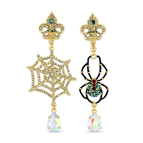 Spider Web Halloween Chandelier Earrings - Ritzy Couture Deluxe -18k Gold Plated