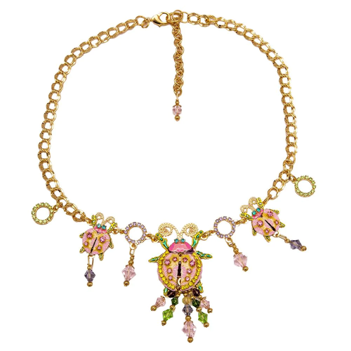 Lunch At The Ritz Lady Beetle Moveable Wing (Goldtone) Necklace.