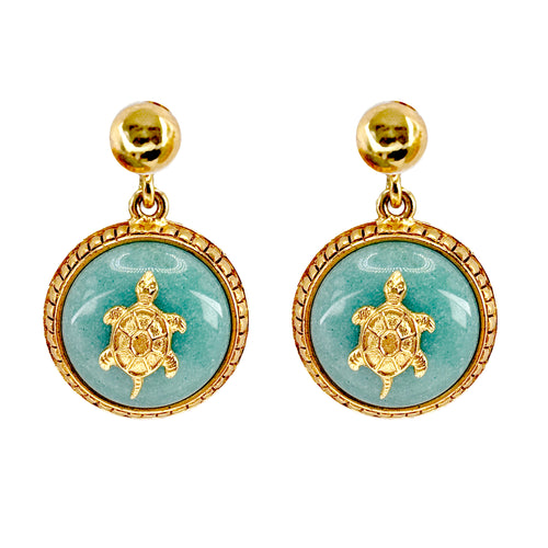 Oscar De La Renta Luxury Gold Plate Jade Tortoise Designer Drop Earrings Vintage