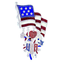 Exquisite July 4th American USA Flag Patriotic Pin Brooch Ritzy Couture - Fine Silver Plated