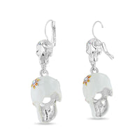 Sparkling Sugar Skull Leverback Earrings-Ritzy Couture DeLuxe-Fine Silver Plated