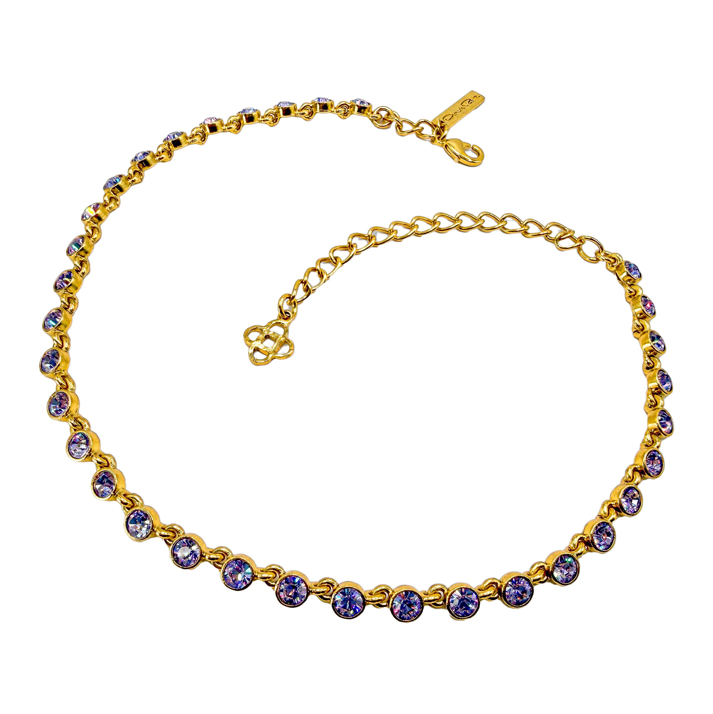 Oscar de la Renta 22k gold violet tanzanite Swarovski crystal tennis necklace. Luxury designer jewelry. 16" adjustable to 20.5". Made in USA.