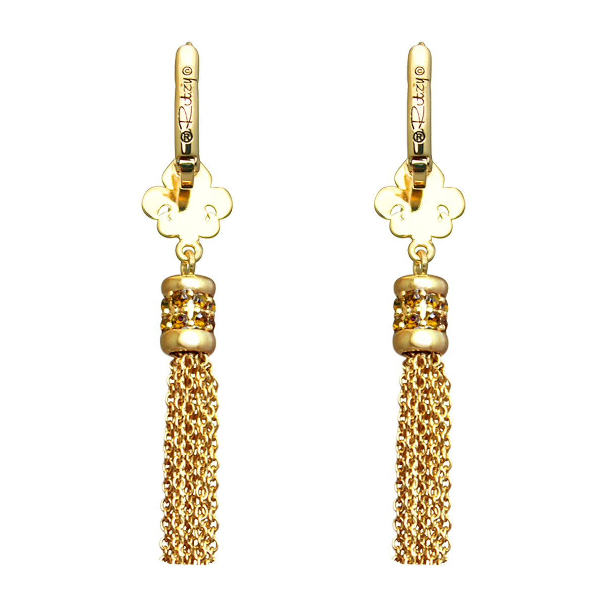 Ritzy Couture Fleur-de-Lis Topaz Tassel Leverback Earrings - Goldtone Luxury - Goldtone/Topaz Tassel