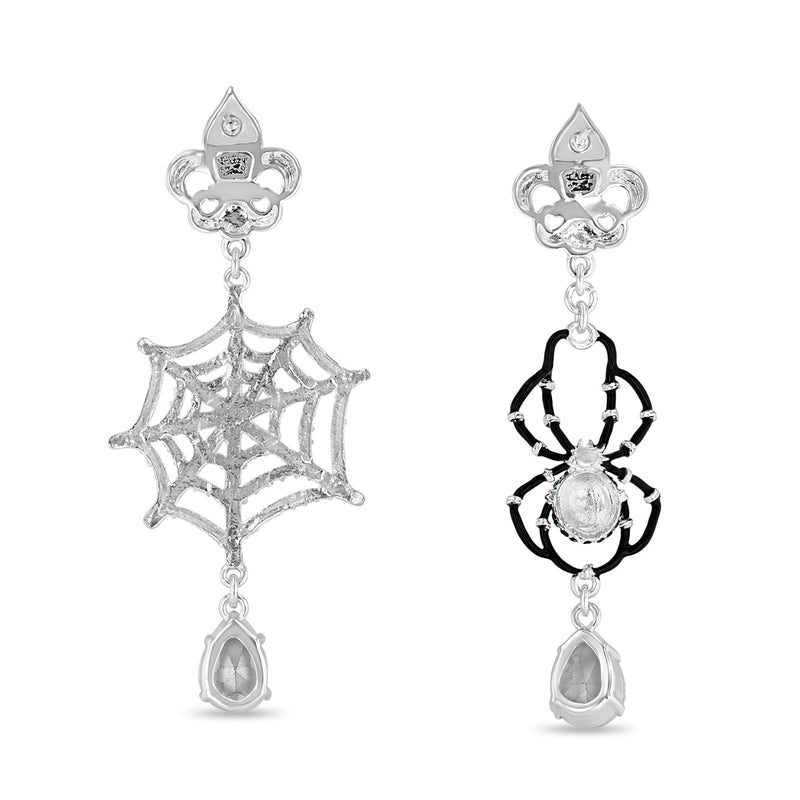 Ritzy Couture DeLuxe Halloween Spider Crystal Leverback Earrings-Fine Silver Plate - Black Red silver