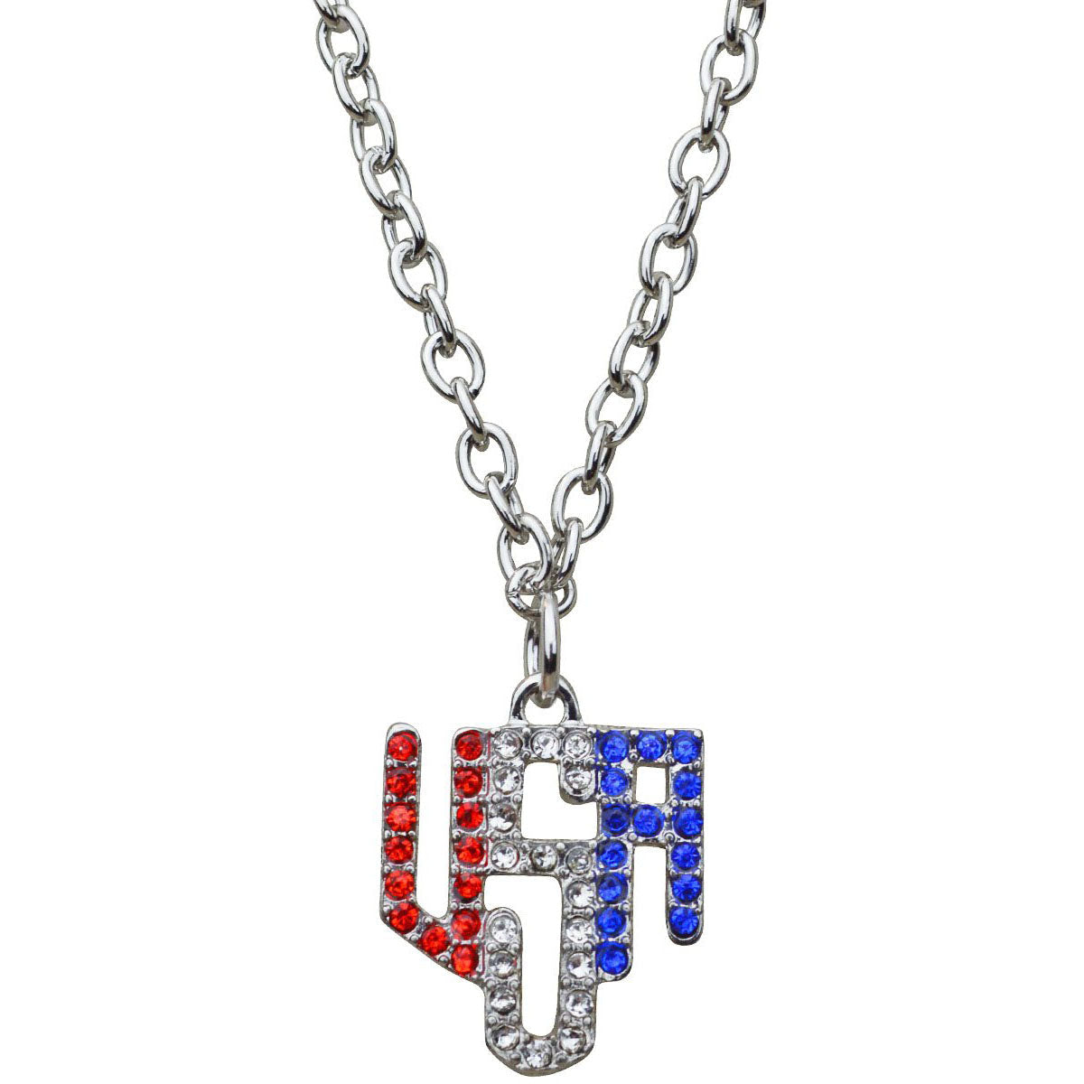 USA Red White & Blue Pave Crystal Rhinestone Charm Pendant Necklace 16" with 3.0" Extender (Silvertone) Ritzy Couture. No one loves America more than you. It's okay to admit you love to sport your patriotic side. Each red, white and blue Silvertone American Pave USA pendant is totally tricked out in glass stones. Wear it alone or stack it with our other Red, White & Blue Patriotic Flag Day and July 4th Pendant Necklaces (Sold Separately)!