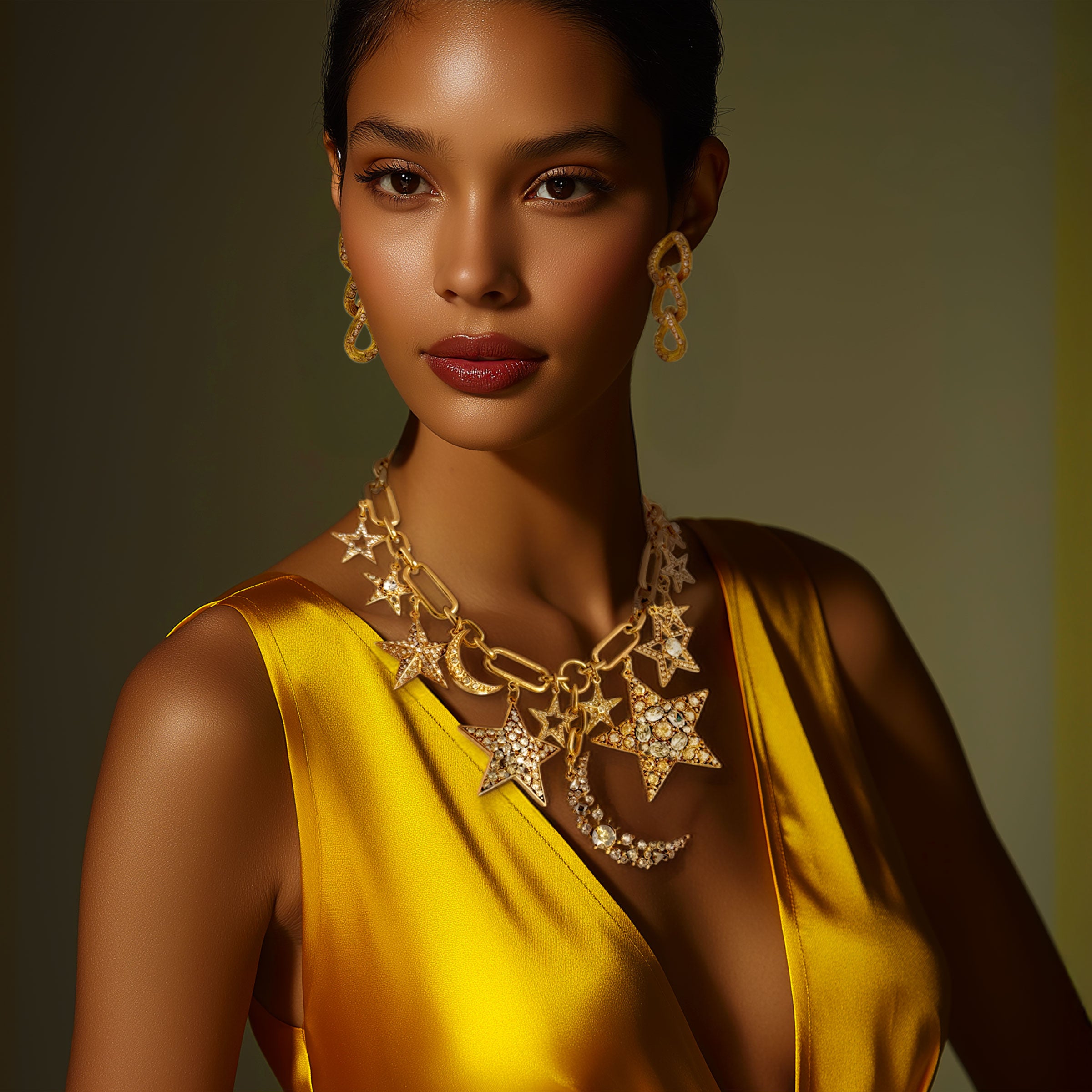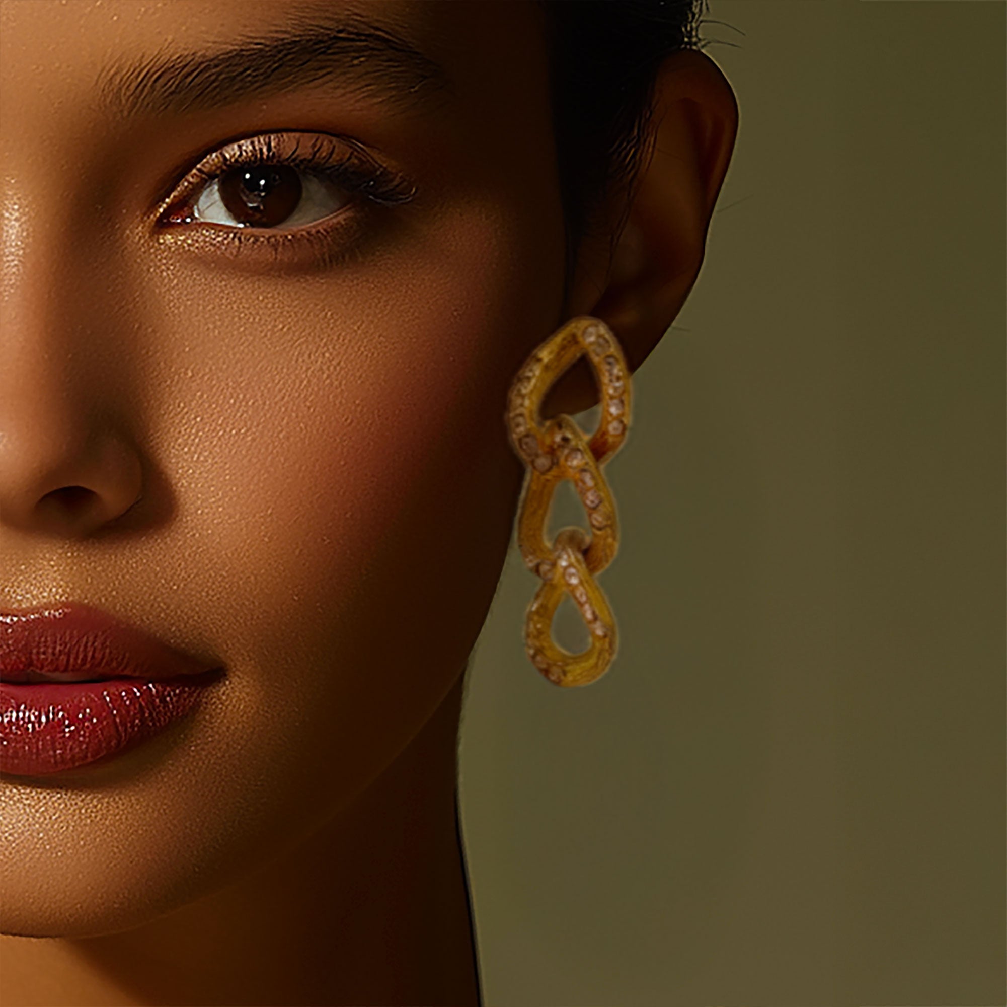 Each Oscar de la Renta chain link earring measures 2.5 inches length by 0.75 inches width, weighing 17 grams per earring. The generous proportions make these luxury designer earrings perfect for those who appreciate bold statement jewelry, while secure Oscar de la Renta post mechanisms provide comfortable wear for pierced ears. These Swarovski crystal chain link earrings feature warm light Colorado topaz tones from golden champagne to honeyed amber.