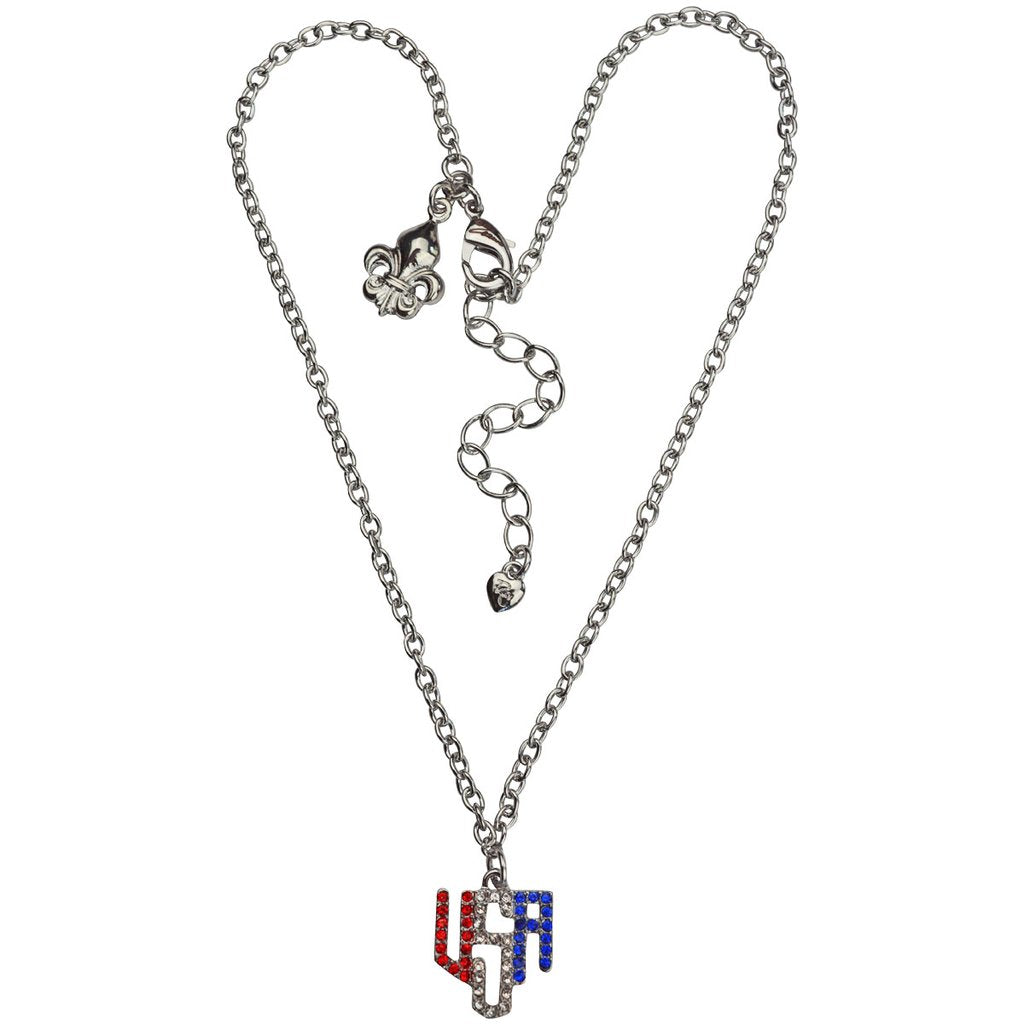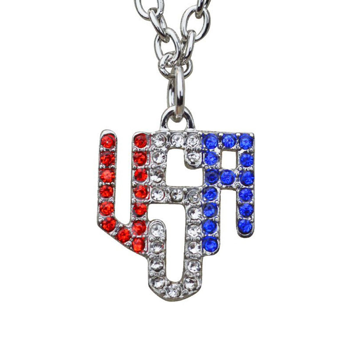 USA Red White & Blue Pave Crystal Rhinestone Charm Pendant Necklace 16" with 3.0" Extender (Silvertone) Ritzy Couture. No one loves America more than you. It's okay to admit you love to sport your patriotic side. Each red, white and blue Silvertone American Pave USA pendant is totally tricked out in glass stones. Wear it alone or stack it with our other Red, White & Blue Patriotic Flag Day and July 4th Pendant Necklaces (Sold Separately)!