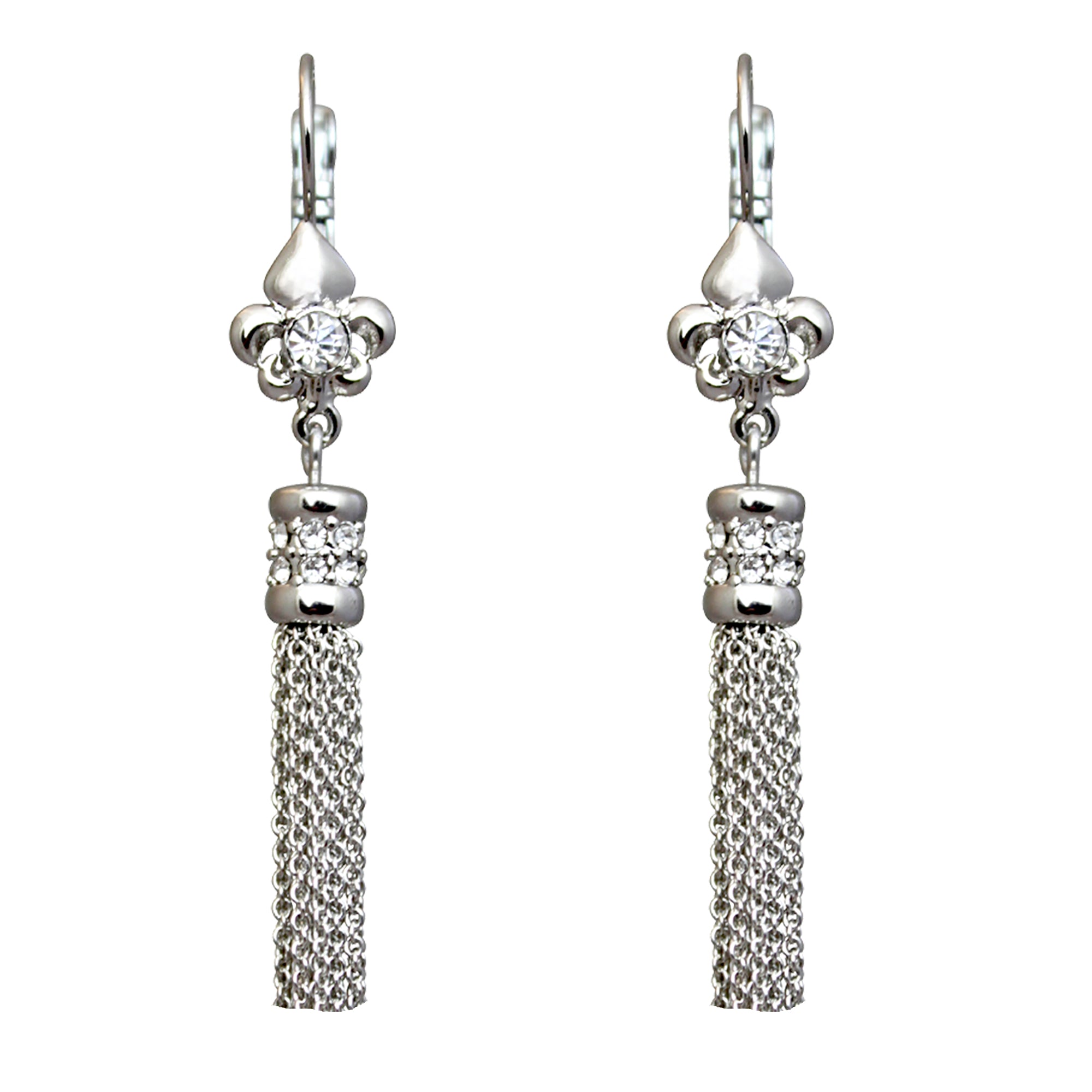 Ritzy Couture Fleur-de-Lis Crystal Tassel Leverback Earrings - Silvertone Luxury
